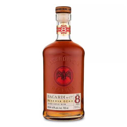 BACARDÍ Reserva 8 Rum is barrel aged for no less than 8 years under the Caribbean sun and filtered through charcoal. This gold rum has mellow flavours of dried fruits, spices and oaky vanilla.