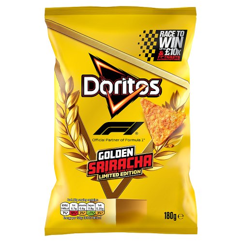 - Race to win up to £10,000 & F1 tickets + a prize every hour* - Sharing bag of Doritos Hot Honey Golden Sriracha Tortilla Chips Sharing Crisps 180g Limited Edition - New Doritos Golden Sriracha for a turbo-charged sweet and spicy flavour experience - Grab a taste of victory. Race to win up to £10k and F1® tickets, plus a prize every hour* - Suitable for vegetarians *UK&ROI, 18+, 08:00-20:00 daily, 26/01/26-05/04/26. Purchase necessary - See https://www.joy-pepsico.eu/engb/promotions/doritos/Race-to-Win/terms-conditions for full T&Cs. The F1 logo, FORMULA 1, F1, Grand Prix and related marks are trademarks of Formula One Licensing B.V., a Formula 1 Company. All rights reserved