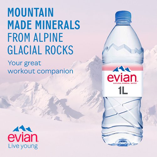 Enjoy mountain made minerals from Alpine glacial rocks, evian natural mineral water: Is naturally filtered through layers of glacial rocks Contains naturally occurring minerals Contains a balance of minerals including calcium, magnesium and potassium Recyclable packaging Bottled with 100% renewable electricity. With a balanced mineral composition including calcium, magnesium and potassium. evian water provides hydration*, with a crisp and refreshing taste. Whether you’re at home, at the office or on the go at the gym, our 1L bottle of evian natural mineral water helps you stay hydrated* anytime, anywhere. *Drinking at least 2 litres of fluid, including water, a day can contribute to the maintenance of normal physical and cognitive function. Explore evian At evian, we’ve got a range of bottled natural mineral water to suit any occassion. From conveniently sized 500ml water bottles that are easy to carry, to multipack water bottles and larger 1.5L bottles for the entire family, there’s a bottle of evian to help you stay hydrated* throughout the day.