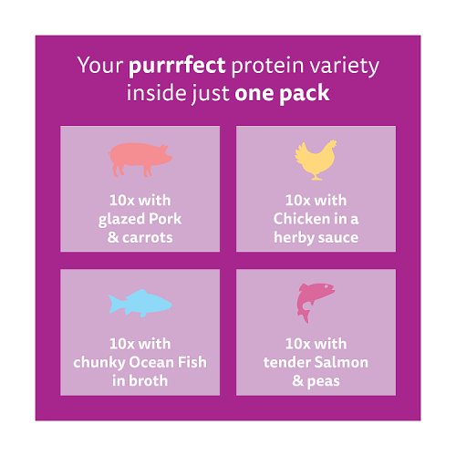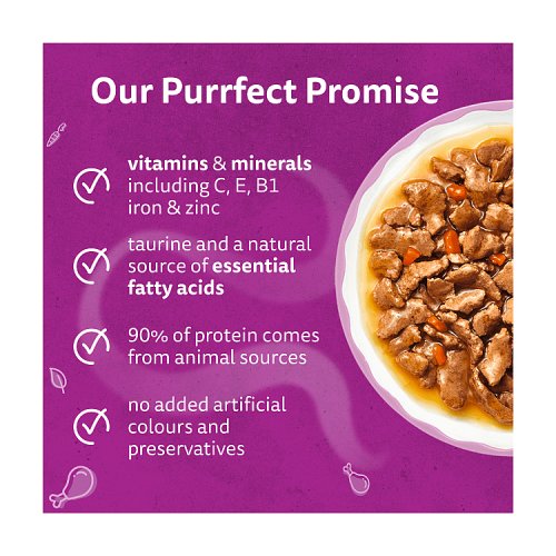 Unlock a world of purrfect aromatic meals. Where specially selected ingredients are infused with aromas proven to delight the feline senses. Served with a generous topping of flavoursome sauce, each meal tastes just as good as it smells. Irresistible aroma for even more purrs Healthy digestion and immune support 90% of the protein comes from animal sources No added artificial colours and preservatives.